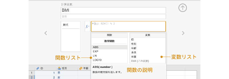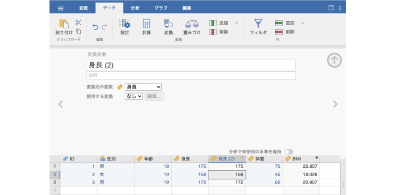 変換 すでにある変数値に変換を適用して新たな変数を作成します。