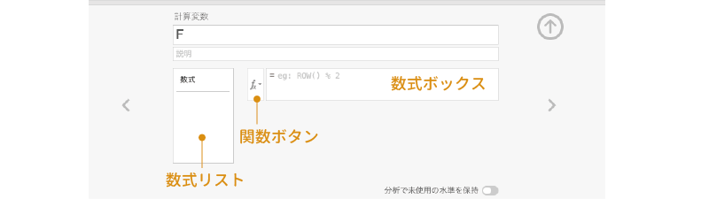 続いて,数式ボックスにグループ分けのための式を入力します。関数ボタン()で表示される関数一覧の中から,「IF」を選択してください (図 3.54)。このIF関数は,条件式の結果に応じて異なる値を設定できる関数です。