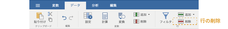 削除 スプレッドシート上で選択した変数(列)を削除します。