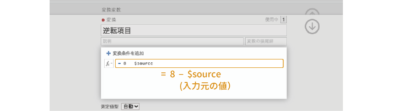 そして「変換条件を追加」の数式ボックスに逆転のための変換式を設定します。