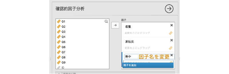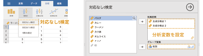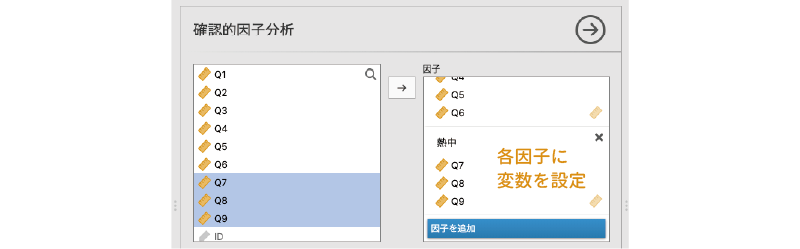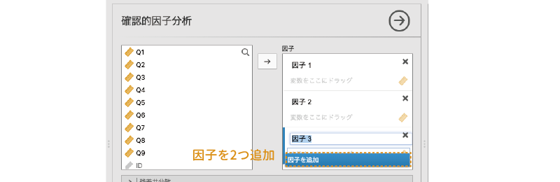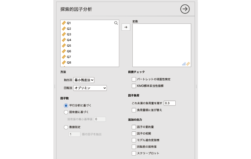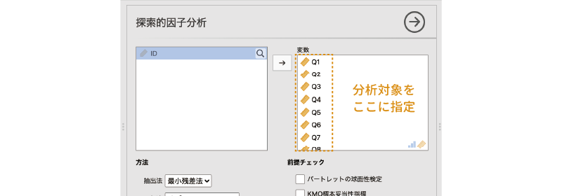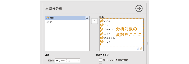 - 項目 分析対象の項目(変数)を指定します。