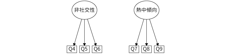 探索的因子分析でも,何らかの形で計算のための条件や前提を設定しないことには計算結果が1つに定まらなかったのと同様に,確認的因子分析でもまったくの条件なしにはモデルに関する推定ができません。