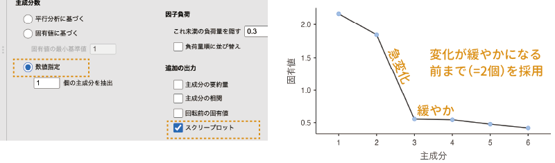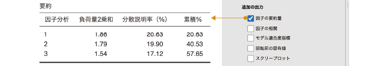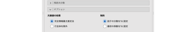 - 因子の分散を1に固定 因子の分散を1に固定した場合の計算結果を表示します。