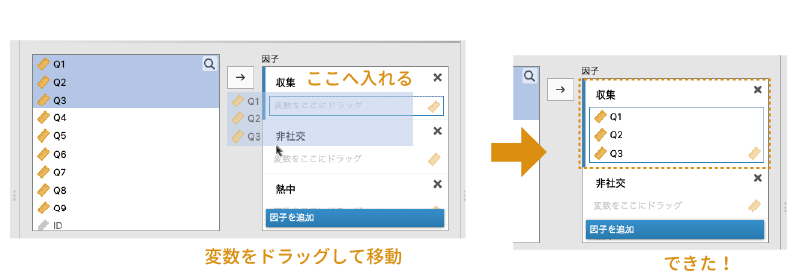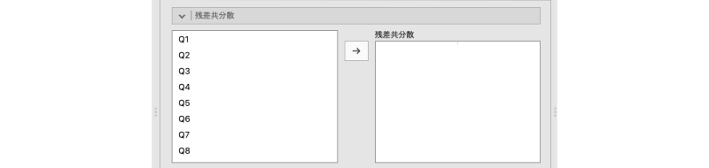 この画面の左側に通常の尺度項目が,右側に逆転項目が入るように,必要な変数を選択して移動します(図 10.8)。