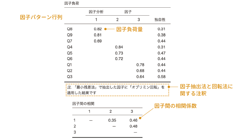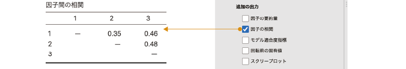 - 因子共分散 因子の分散,および因子間の共分散または相関係数を算出します。