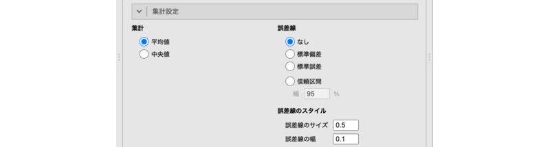 - 図に示す集計値の種類や誤差線の種類を設定します。