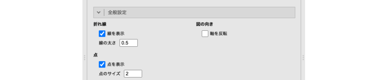 - 線のスタイルや点のサイズなど,折れ線グラフの全体的な見た目の設定を行います。